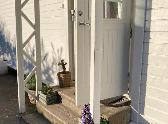 Jaktstugan välkomnar dig med utsikt över trädgården.